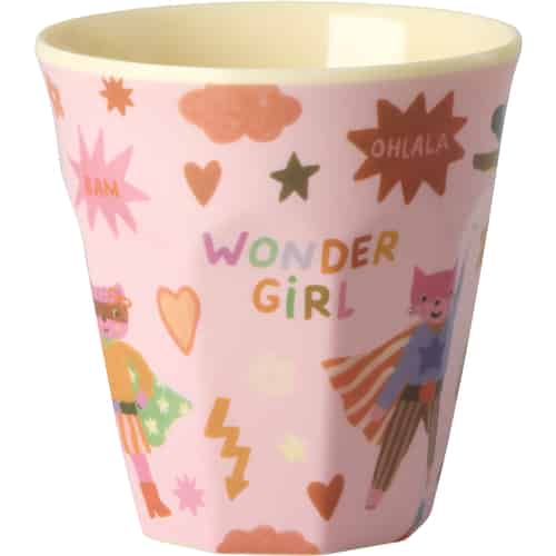 Rice Melamin barnekopp "Hero" liten - Rosa