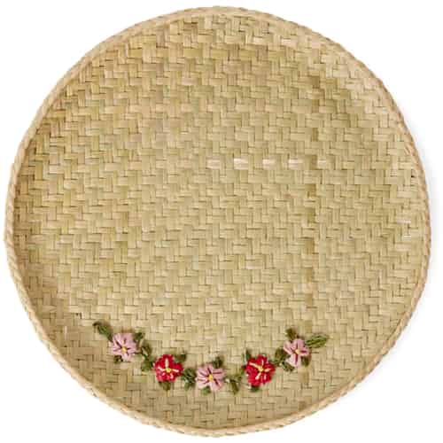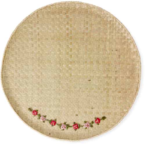 Rice Raffia Brett Rund - "Flower Vine" - Liten På lager