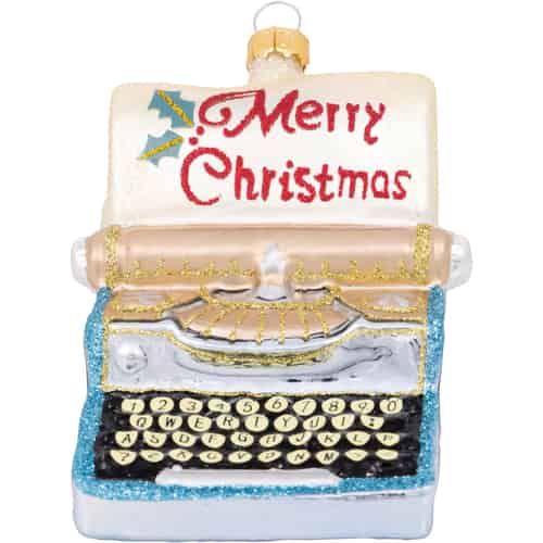 GreenGate Julepynt - Glass - Skrivemaskin "Merry Xmas Pale Blue" På lager