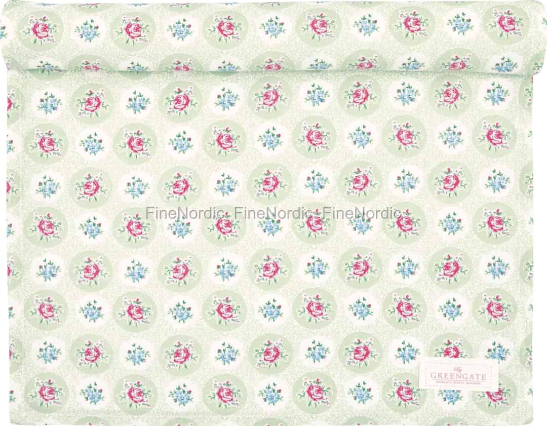 La bordet ditt blomstre med den milde sjarmen fra bordløperen Elle Pale Green. Dette vakre stykket fra GreenGate fanger den stille gleden fra en hemmelig hage, med sine delikate blomstermedaljonger mot en myk, beroligende grønnfarge.