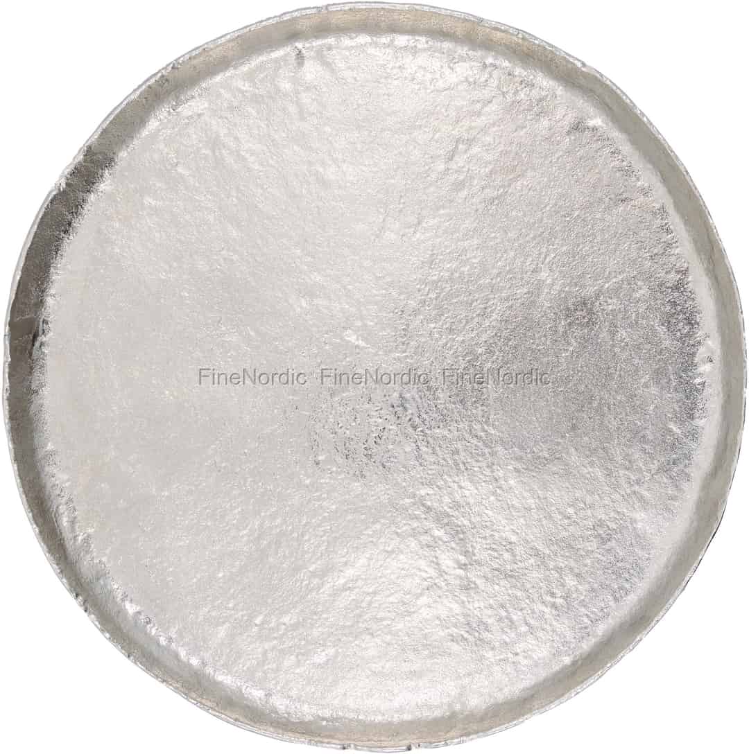 Oppdag den enkle gleden ved å skape vakre stilleben med det runde 'Champagne'-brettet. Overflaten, levende med tekstur, forteller en historie om kunstnerisk håndverk og rå eleganse. Hver bølge i metallet fanger det omgivende lyset og kaster et mildt, skimrende skinn som myker opp ethvert rom. Den organiske, lett uregelmessige kanten forsterker den håndlagde følelsen og minner deg på skjønnheten i det uperfekte. Dette er ikke bare et brett; det er et fundament for din kreativitet, en stille scene for gjenstandene du elsker.