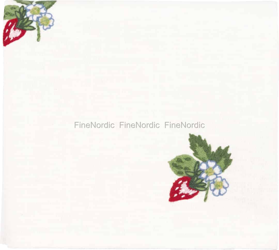 - Utsøkte broderte detaljer: Hvert hjørne er prydet med vakkert broderte jordbær og blomster, som tilfører et preg av håndlaget kunst og nostalgisk sjarm til borddekkingen din.