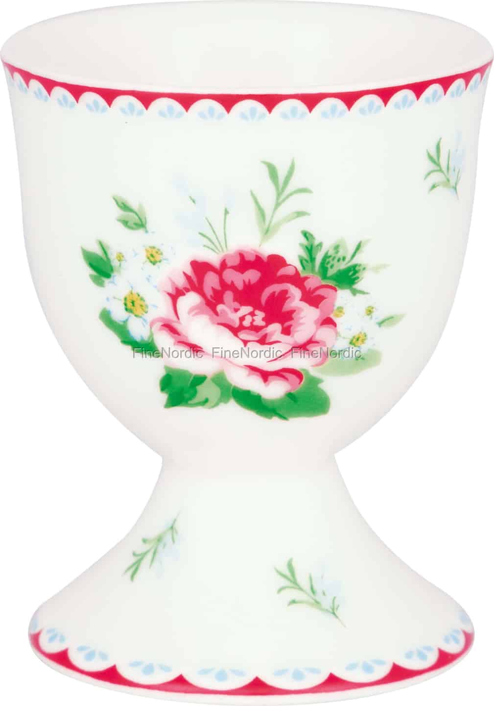 Alivia White-kolleksjonen fra GreenGate er en hyllest til de enkle, gledesfylte øyeblikkene som starter dagen vår. Dette vakre eggeglasset fanger essensen av en fredfull, landlig hage der livlige roser og små villblomster blomstrer i harmoni. Hver detalj, fra de nøye utformede kronbladene til de friske, grønne bladene, er skapt for å vekke en følelse av nostalgi og varme. Dette er ikke bare en gjenstand som holder morgenegget ditt; det bærer med seg løftet om en vakker dag.