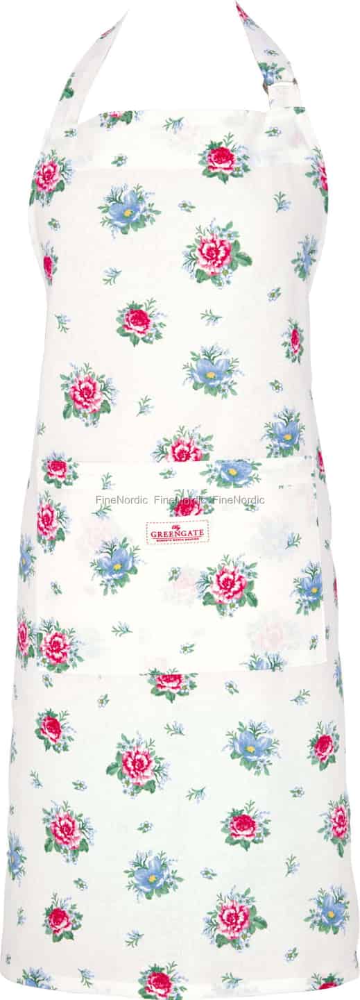 Omfavn de enkle gledene i hjemmet med Alivia White-forkleet fra GreenGate. Designet fanger essensen av en frodig, landlig hage, med delikate klynger av livlige roser og fredfulle blåklokker spredt over et kritthvitt lerret. Hver detalj, fra det myke, pustende bomullsstoffet til den ikoniske merkelappen med rød søm, gjenspeiler GreenGates forpliktelse til å skape 'øyeblikk verdt å dele'. Dette er ikke bare et forkle; det er en invitasjon til å senke tempoet og finne skjønnhet i dine daglige ritualer.