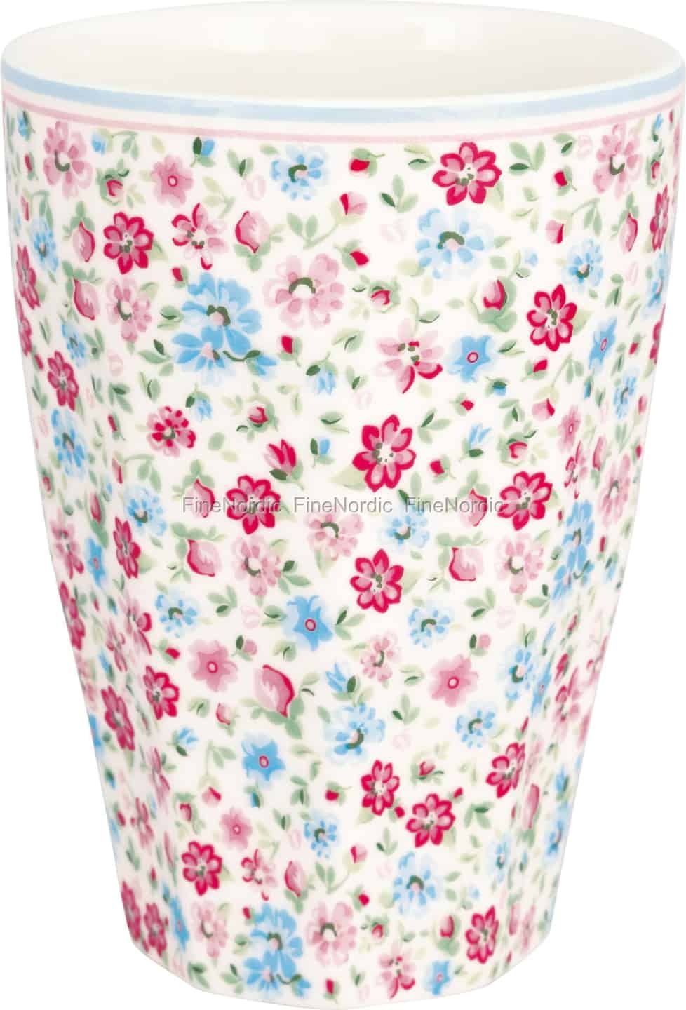 Se for deg at du holder en varm kopp, der overflaten er som et teppe av glade blomster. Louisa White lattekoppen fra GreenGate bringer sjarmen fra en solfylt hytthage rett i hendene dine, og gjør hver slurk til en liten feiring.