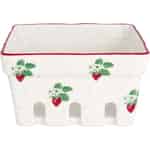 Se for deg en solfylt morgen, der duften av en sommerhage siver inn gjennom vinduet. Med fruktskålen Berry White kan du holde fast ved den følelsen hele året. GreenGate har på vakkert vis gjenskapt den enkle bærkurven i høykvalitets keramikk, og skapt et produkt som er både herlig nostalgisk og uendelig praktisk. Det delikate mønsteret av modne jordbær, hvite blomster og friske grønne blader er spredt over den offwhite glasuren, og vekker minner om piknik på landet og hjemmelaget syltetøy.