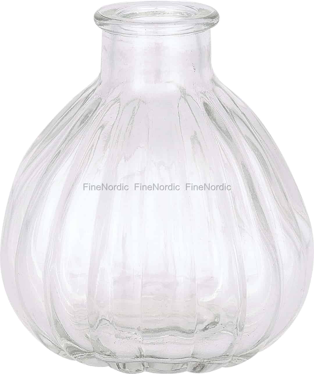Det er en spesiell glede i å bringe et stykke av naturen inn. Denne nydelige, buede vasen fra GreenGate er en hyllest til nettopp det. Den organiske, buttede formen minner om en blomsterløk som venter på å springe ut, mens den rillede teksturen i det klare glasset fanger dagslyset på en vakker måte og skaper et uttrykk som endrer seg gjennom dagen. Den krever ikke oppmerksomhet, men inviterer deg heller til å stoppe opp og verdsette de små, stille detaljene som gjør et hus til et hjem.