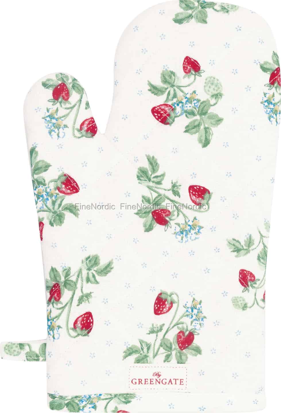 Forestill deg den søte duften av sommerbakst som fyller kjøkkenet ditt. Denne herlige grillhansken fra GreenGate, med sitt sjarmerende jordbærmønster, er den perfekte følgesvenn for dine kulinariske øyeblikk, og forener praktisk funksjon med nostalgisk skjønnhet.