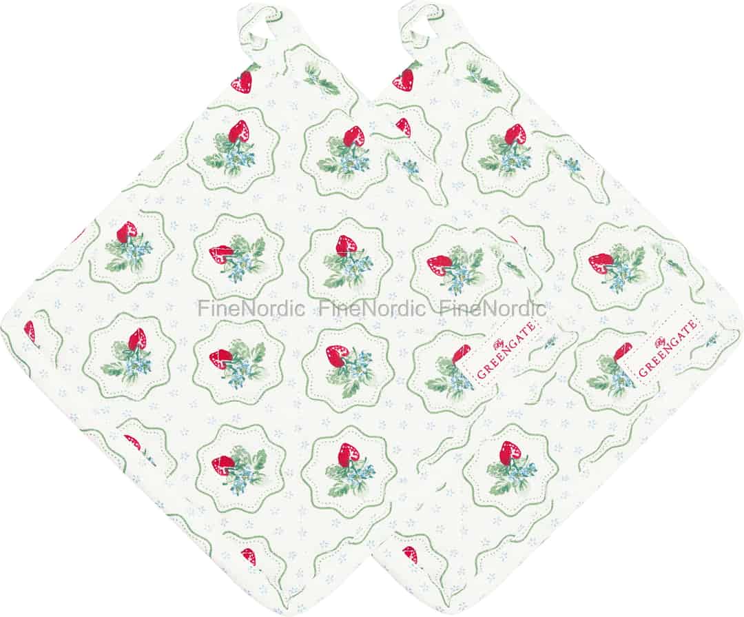 - Autentisk GreenGate-design: Med det kjære 'Berry Petit'-mønsteret er disse gryteklutene et bevis på GreenGates signaturstil, der tidløse mønstre elegant kombineres med funksjonalitet i hverdagen.