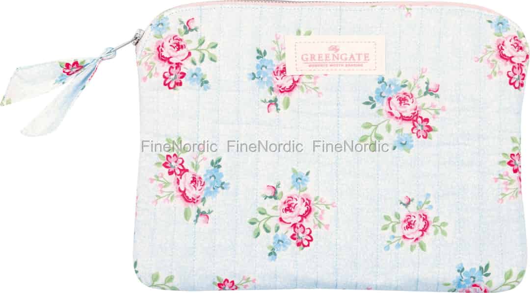 Sveip teknologien din inn i den milde sjarmen fra en landlig hage. iPad-trekket Nikolina Pale Blue fra GreenGate gir et snev av mykhet og romantikk til hverdagen, og beskytter enheten din med sin vakkert vatterte bomull.