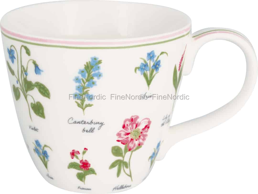 Se for deg at du holder et varmt krus i hendene mens du hilser morgenen. Agnes White-kruset fra GreenGate fanger den stille skjønnheten fra en blomstereng, med delikate botaniske illustrasjoner som inviterer til et øyeblikk av fredfull ettertanke.