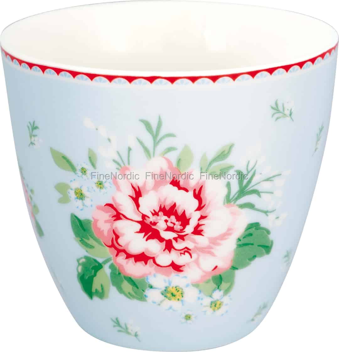 Se for deg at du holder denne vakre koppen i hendene, kjenner varmen bre seg og ønsker dagen velkommen. Lattekoppen Alivia Pale Blue fra GreenGate er en herlig invitasjon til å senke tempoet, med sitt sjarmerende blomstermønster som vekker minner om en solfylt, landlig hage.