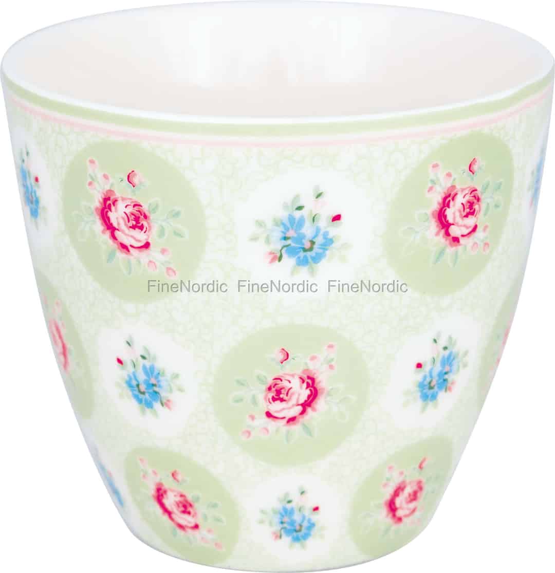Se for deg at du holder morgenkaffen din i en kopp som føles som en spasertur gjennom en sommerhage. Lattekoppen Elle Pale Green fra GreenGate bringer denne milde sjarmen til hendene dine, med sine delikate blomsterdetaljer og myke, beroligende farger.