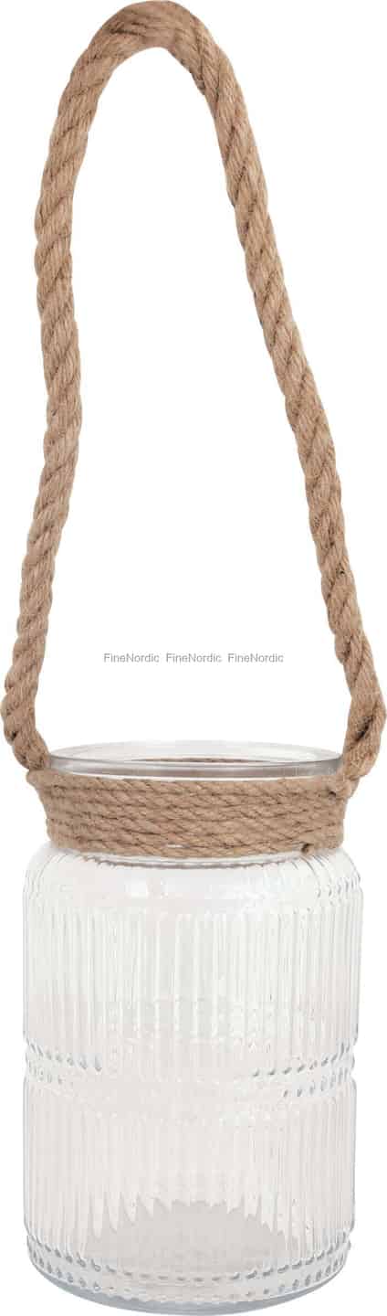 Oppdag den enkle skjønnheten i denne GreenGate-lykten, der raffinert glass møter rustikk sjarm. Den vertikalt rillede overflaten på det klare glasset er designet for å skape et vakkert, diffust lys, som mykner skinnet fra et stearinlys og kaster milde mønstre ut i rommet. Denne elegante detaljen komplementeres perfekt av det tykke, naturlige tauet som er surret rundt halsen og danner et håndtak som føles både praktisk og autentisk. Det er en gjenstand som forteller historier om værharde kystlinjer og stille, fredfulle øyeblikk.