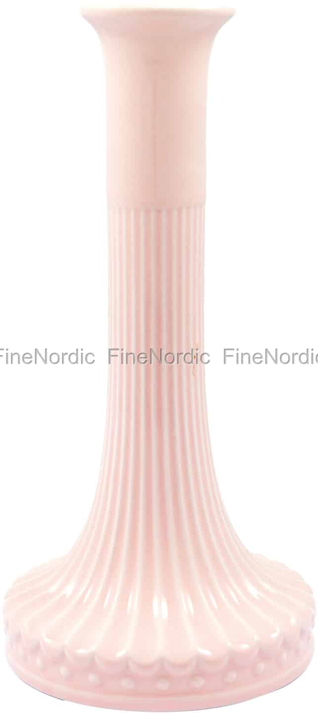 Se for deg det myke, blafrende lyset fra et stearinlys som danser over denne vakre kermaikkstaken. Den milde, lyserosa fargen og det klassiske rillede designet gir en stille, romantisk sjarm til ethvert rom, og inviterer deg til å nyte et øyeblikk av enkel ro.