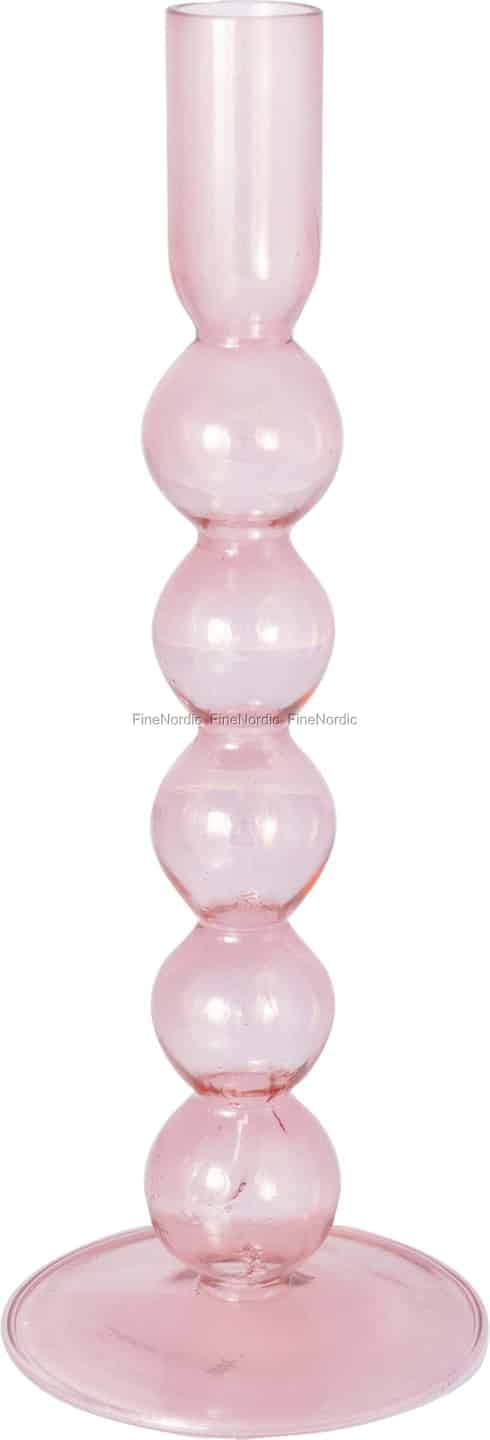 Oppdag en lysestake som er like mye en skulptur som en kilde til mildt lys. Fra det anerkjente danske merket GreenGate, hyller dette designet den enkle skjønnheten i form og farge. Stilken, en leken kaskade av fem perfekt avrundede glasskuler, reiser seg fra en stabil, sirkulær base til en klassisk sylindrisk topp. Det gjennomsiktige glasset, farget i en delikat gammelrosa nyanse, fanger lyset på en nydelig måte og vil garantert bli et samtaleemne i hjemmet ditt.