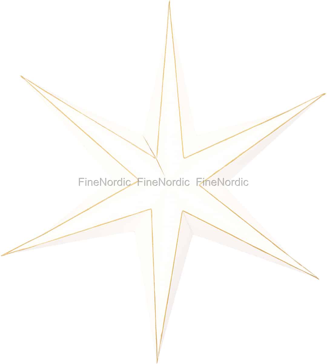 Se for deg en klar vinterkveld, der verden utenfor er dempet av snø. Denne vakre papirstjernen, med sin rene, hvite form og delikate gullkanter, fanger den stille magien fra en tradisjonell skandinavisk jul.