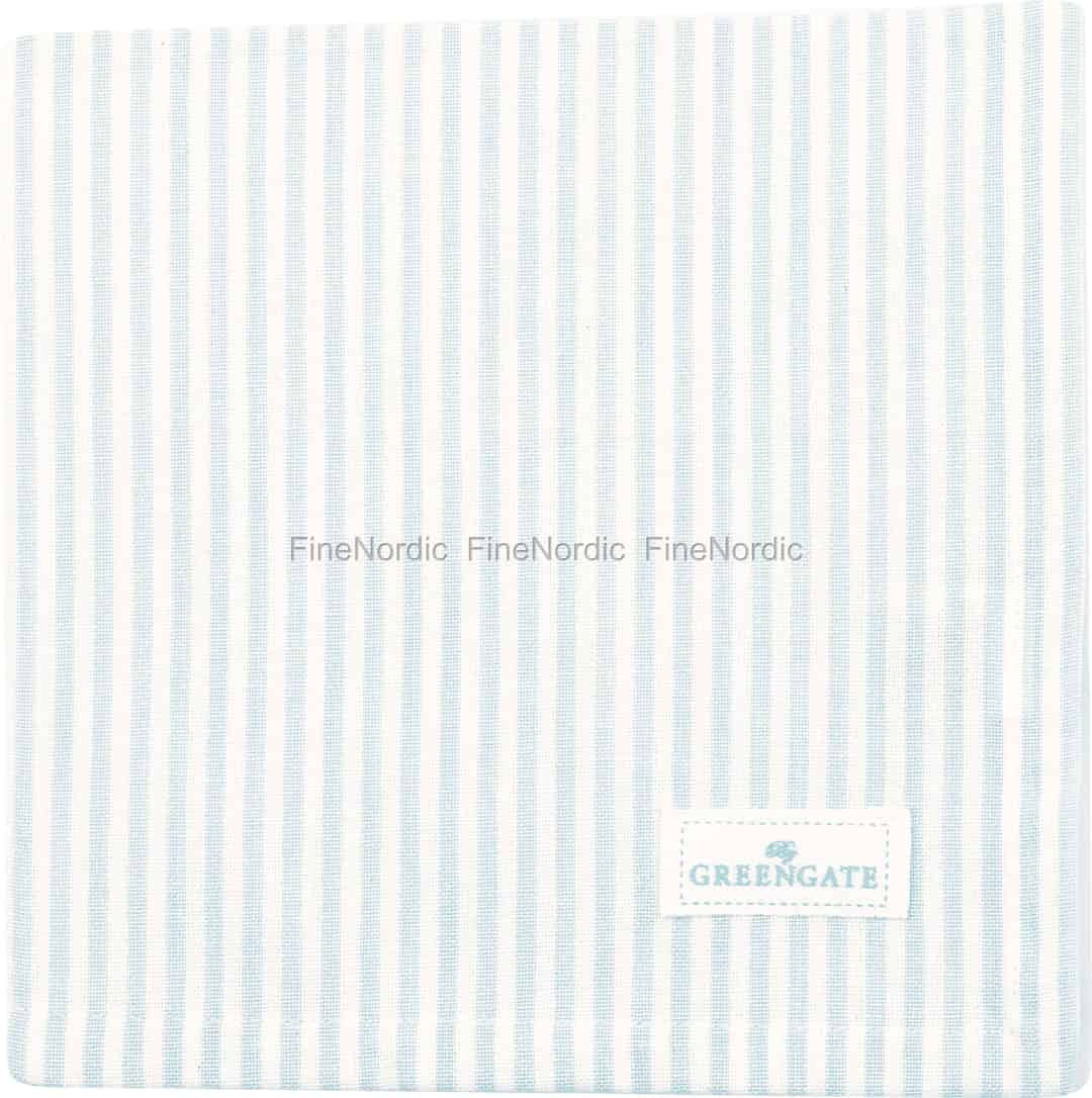 GreenGates Alexa Stripe-kolleksjon er en kjærlighetserklæring til den enkle skjønnheten ved den skandinaviske kysten. Den milde rytmen i de lyseblå og kremhvite stripene vekker minner om solblekede brygger og det rolige, åpne morgenhavet. Laget av en nydelig, taktil bomull er denne servietten mer enn bare et bordtekstil; den er en invitasjon til å senke tempoet og nyte øyeblikket. Kjenn den myke, betryggende teksturen når du dekker bordet til en stille frokost eller en avslappet lunsj med dine kjære, og bring en følelse av fred og mild orden inn i hjemmet ditt.