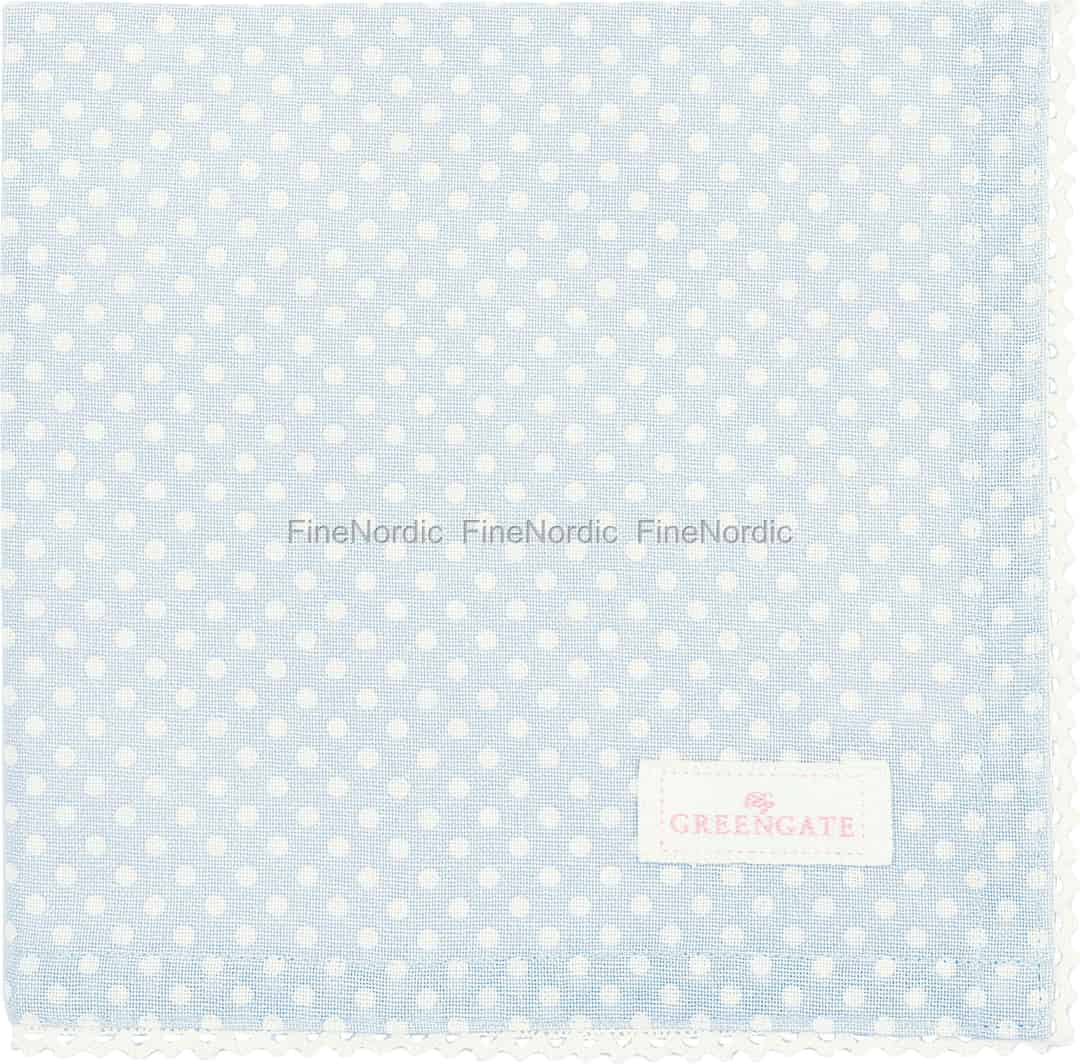 Se for deg et bord dekket for en stille morgenkaffe eller en hyggelig ettermiddagste. Denne sjarmerende stofservietten fra GreenGate, med sine myke, lyseblå prikker og delikate blondekant, tilfører et snev av tidløs skandinavisk romantikk til disse enkle øyeblikkene.