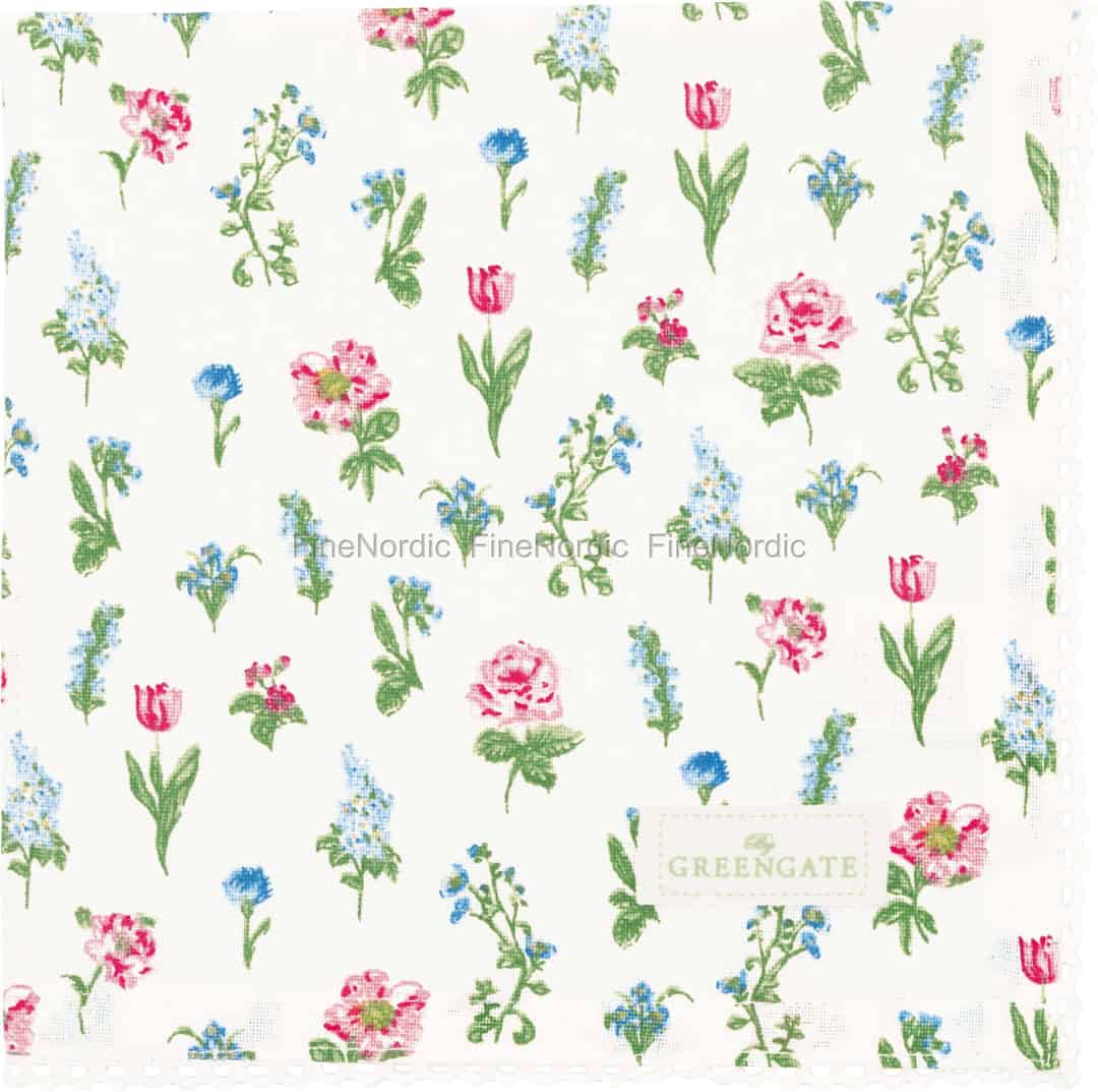 Forestill deg bordet ditt dekket med den milde sjarmen fra en skandinavisk hage. Estrid White-servietten fra GreenGate fanger dette øyeblikket til perfeksjon, med sitt delikate blomsterprint spredt utover myk, ren bomull.