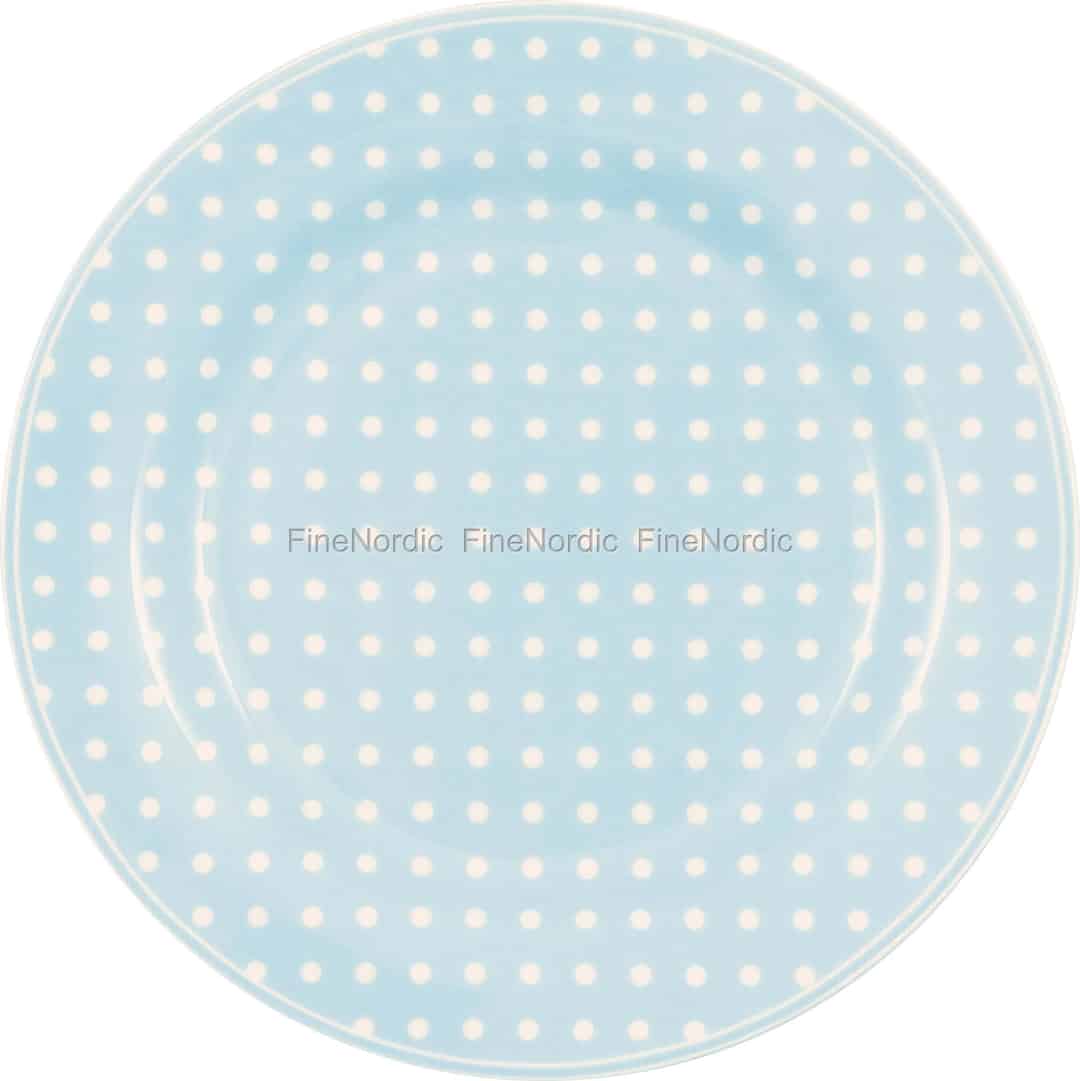 Se for deg et stykke varm sitronkake eller et nybakt wienerbrød servert på denne herlige tallerkenen. Tallerkenen Dotty Pale Blue fra GreenGate bringer et pust av glad nostalgi til bordet ditt, og forvandler enkle øyeblikk til kjære minner.