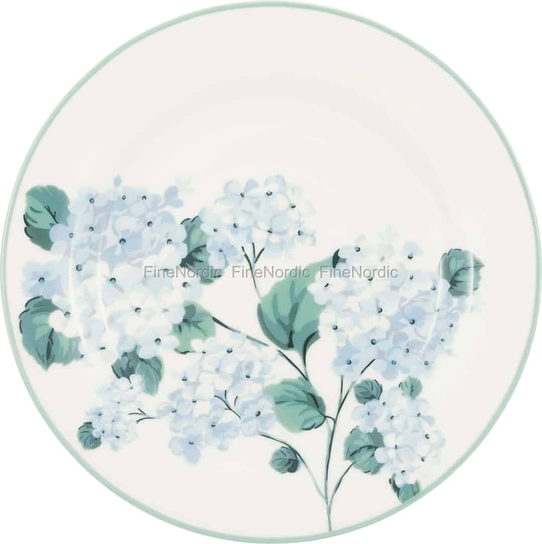 Liliana White-kolleksjonen fra GreenGate er en kjærlighetserklæring til den tidløse sjarmen i en skandinavisk hage i full blomst. Hver tallerken er et lerret for frodige, lyseblå hortensiaer, gjengitt med en kunstners hånd mot en varm, off-white keramisk base. Den blanke overflaten fanger lyset vakkert og fremhever de delikate fargelagene i hvert kronblad og blad. Det er et design som føles både nostalgisk og forfriskende lyst, og som inviterer deg til å senke tempoet og sette pris på de enkle, vakre øyeblikkene i hverdagen.
