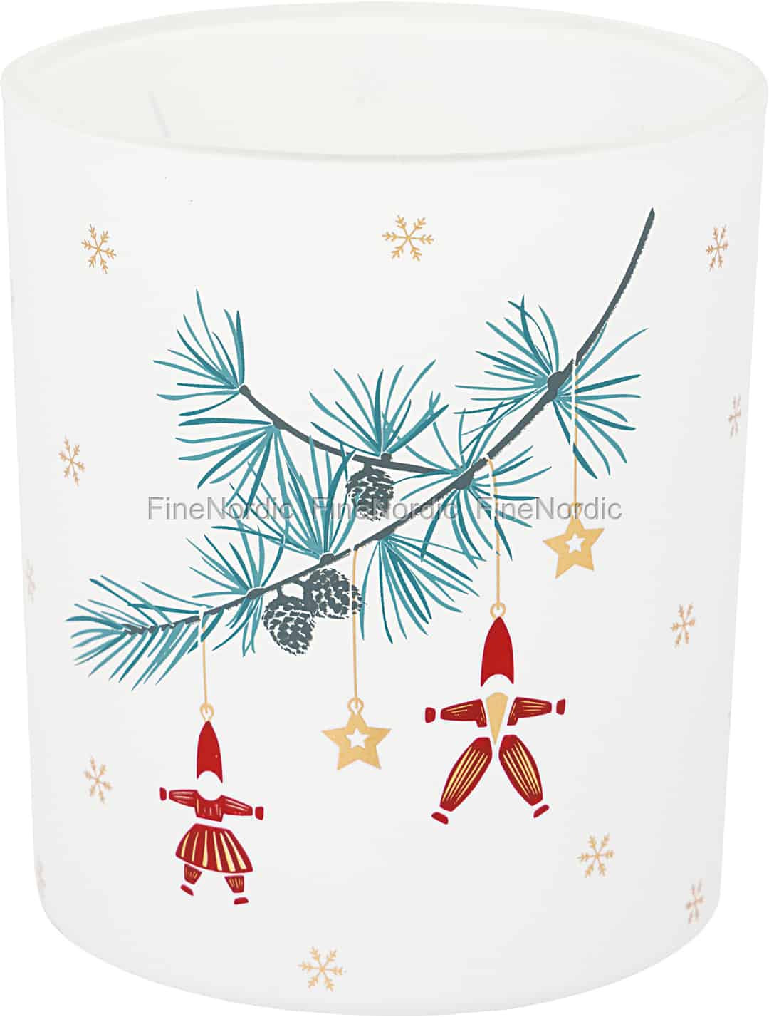 Fra GreenGates hjerte til ditt hjem, fanger telysholderen Juana White den stille gleden i en skandinavisk jul. Det delikate designet utfolder seg rundt det frostede glasset og forteller en historie om en vinterskog der små, lystige figurer og gylne stjerner henger fra en snødekket furugren. Hver detalj, fra de blågrønne nålene til de spredte snøfnuggene, er gjengitt med en sjarmerende, illustrativ kvalitet som føles både tidløs og nostalgisk. Når du tenner et lys inni, våkner scenen til liv og flimrer med en mild magi.