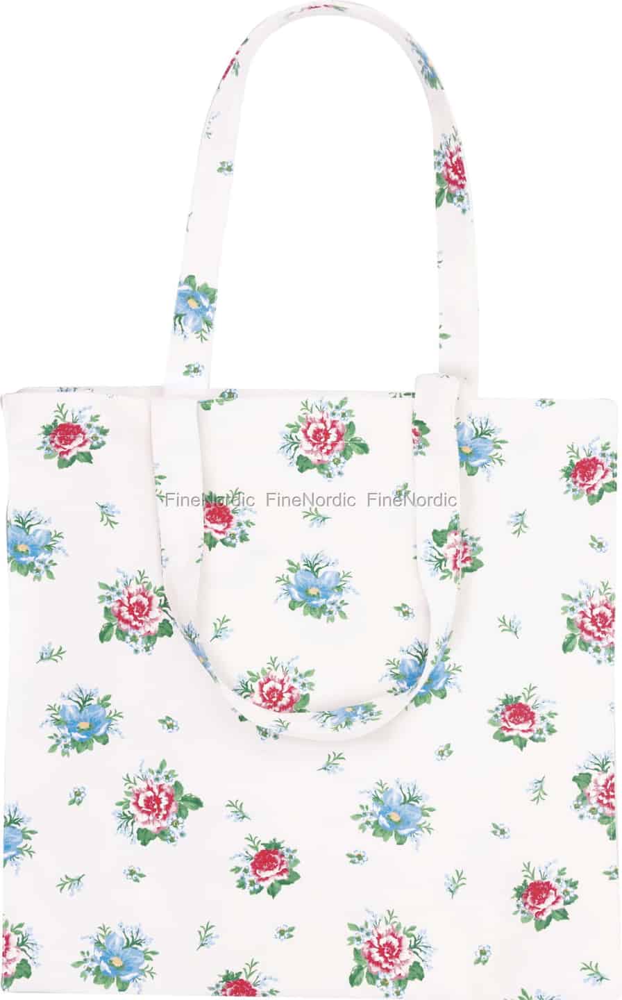Alivia White-vesken fanger den stille gleden av en skandinavisk sommerhage i full blomst. Hver lille bukett, spredt over den rene, hvite bomullen, forteller en historie om varmt solskinn og milde briser. Det er et design som føles både nostalgisk og herlig friskt, skapt av GreenGate for å bringe en følelse av enkel, hjertevarm skjønnhet inn i livet ditt. Enten du samler ferske råvarer eller møter en venn for en kaffe, er denne vesken en herlig og pålitelig følgesvenn.
