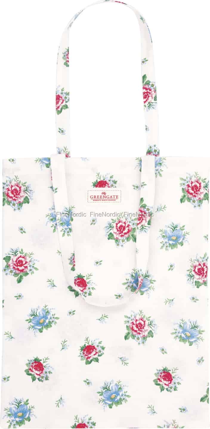 - Signaturblomsterdesign fra GreenGate: Med det kjære Alivia White-trykket viser denne vesken GreenGates romantiske signaturstil. De delikate røde og blå blomstene tilfører antrekket ditt et snev av ekte dansk sjarm.
