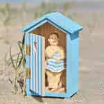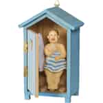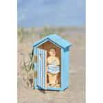 Reis tilbake i tid til en klassisk ferie ved sjøen, der lyden av måker fyller luften og fargerike badehus ligger på rad og rekke langs stranden. Denne fantastiske figuren fra Ib Laursen fanger et stille, humoristisk øyeblikk fra nettopp en slik dag. Når du titter inn gjennom den åpne døren til den lille, blå hytta, oppdager du en herremann som blir tatt på senga, noe som umiddelbart lokker frem et smil. Det er en feiring av de enkle, gledesfylte minnene skapt ved havet, laget med den autentiske sjarmen som Ib Laursen er kjent for.