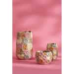 - En unik og fargerik glasur: En spesiell glaseringsteknikk lar myke nyanser av rosa, blått og gult samle seg vakkert, noe som sikrer at ingen potter er helt like og gir hver enkelt en kunstnerisk finish.
