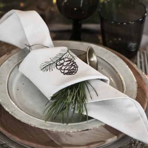 Ib Laursen Stoffserviett Tradisjon med Kongle på Gren Butter Cream