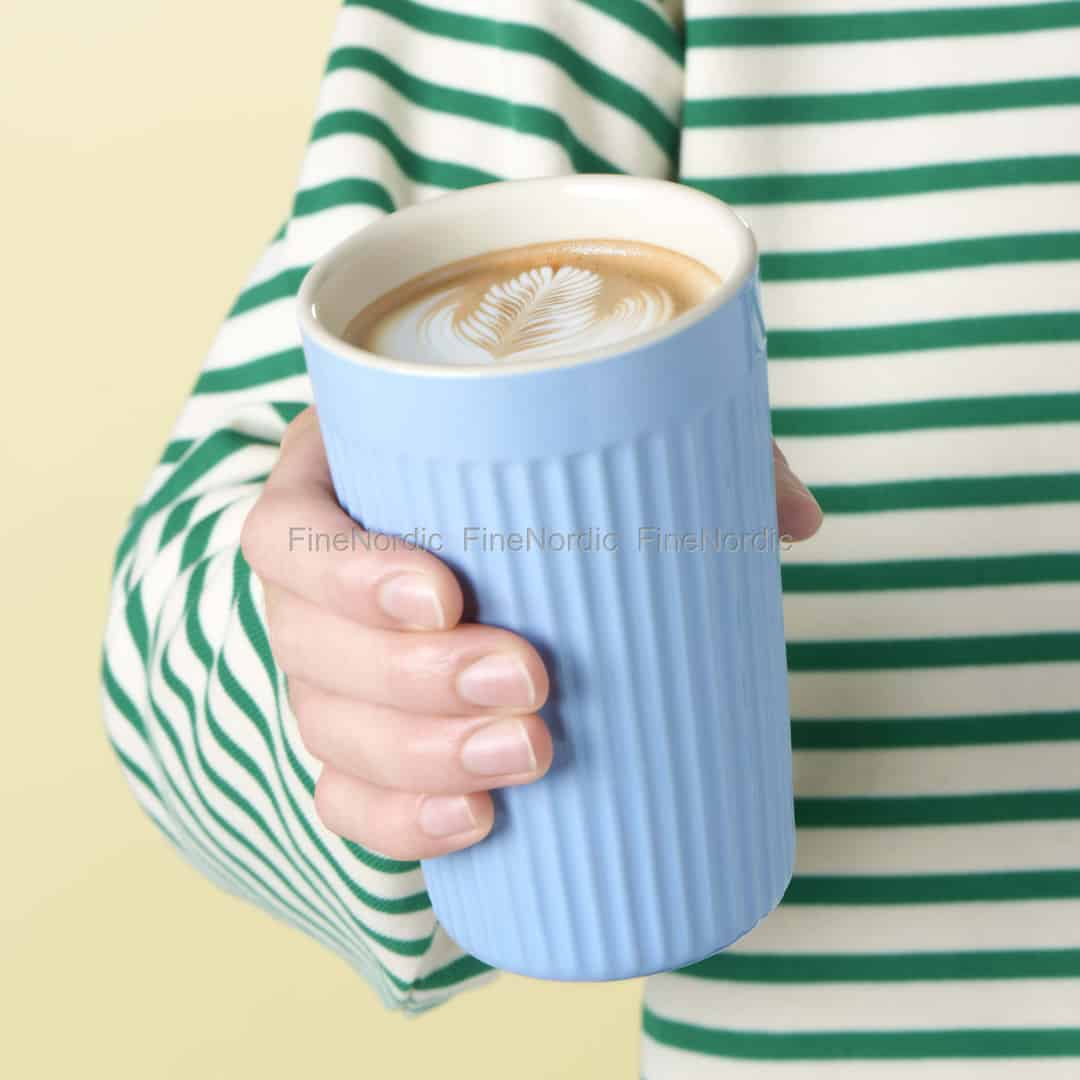 Se for deg at du varmer hendene rundt dette vakkert utformede kruset, fylt med en varm og skummende latte. Mynte-kolleksjonens karakteristiske rillede tekstur og den milde fargen "Blue Bell" tilfører et streif av dansk, landlig sjarm til ditt daglige kafferitual.