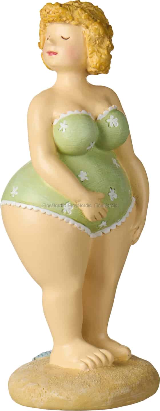 Husker du den enkle gleden av en solfylt dag ved havet? Denne herlige figuren fra Ib Laursen fanger den bekymringsløse stemningen perfekt. Med sitt fredfulle smil og retro-badedrakt bringer hun et hvisk av kystsjarm inn i hjemmet ditt.