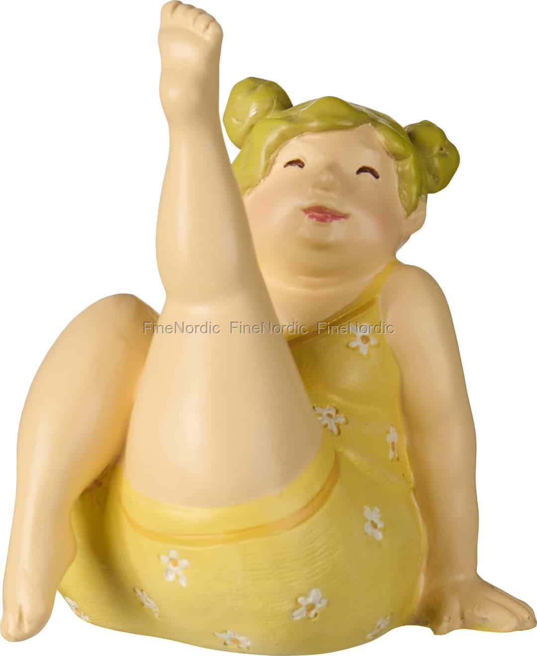 Møt den lille figuren som minner oss på å finne glede i stillheten. Denne vidunderlige damen fra Ib Laursen legemliggjør den rene, enkle lykken fra en lat sommerdag, der bekymringer driver av gårde som skyer på himmelen. Hennes fornøyde smil og lekne positur er en invitasjon til å stoppe opp, puste og sette pris på øyeblikket. Hun streber ikke etter den perfekte yogaformen; hun nyter simpelthen følelsen av solskinn på huden og friheten ved å ikke ha noe annet sted hun må være.
