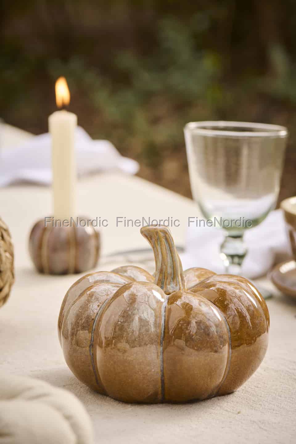 - En helt unik finish: Hvert gresskar er glasert med en reaktiv glasur, noe som skaper subtile variasjoner i de spetterte bruntonene og sikrer at din dekorasjon er helt unik.