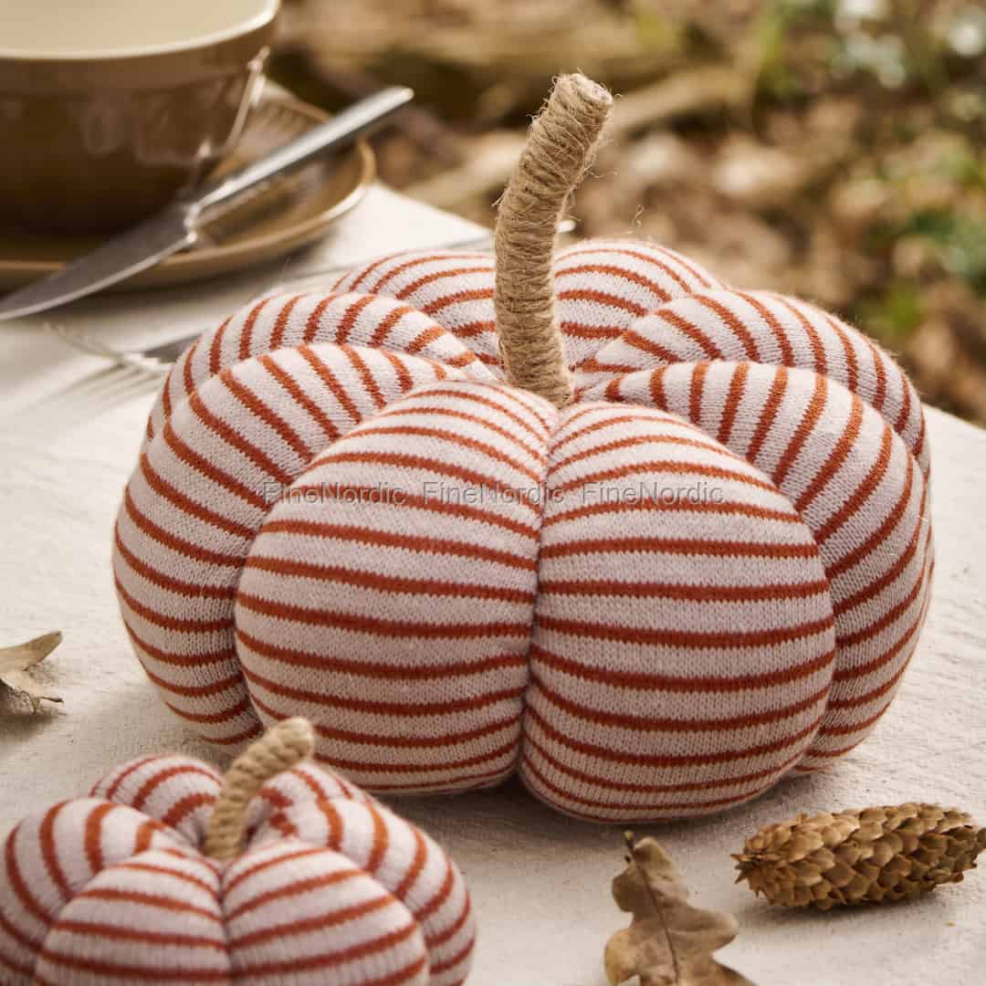 Når luften blir klarere og bladene begynner å falle, kan du invitere høstens milde sjel inn i hjemmet ditt. Dette sjarmerende gresskaret fra Ib Laursen, med sin myke, strikkede tekstur og varme striper, gir en varig følelse av høstlig hygge.