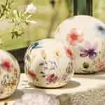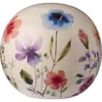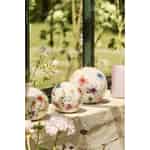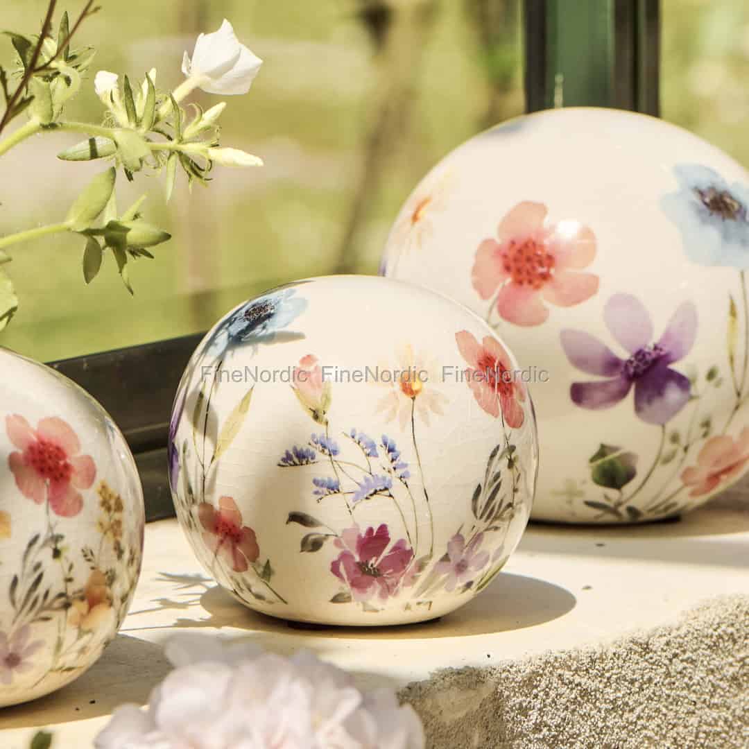 Inviter den milde skjønnheten fra en sommereng inn i hjemmet ditt med denne sjarmerende dekorkulen. Hver keramiske kule er prydet med delikate villblomster i akvarellstil, satt mot en kremfarget, krakelert glasur som hvisker om tidløs sjarm.