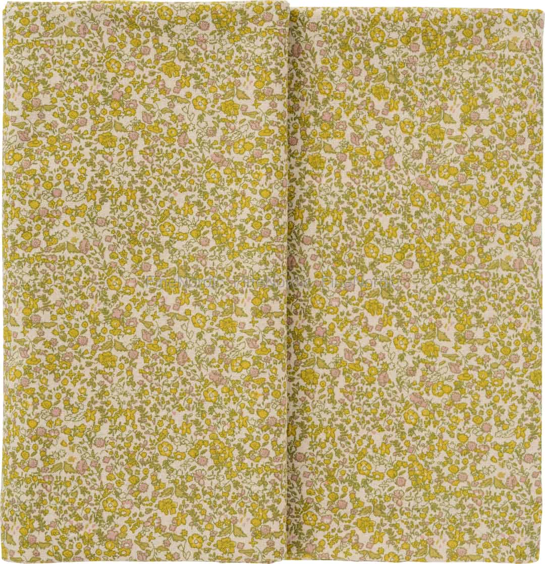Ib Laursen Duk "Rita" - Aflang natur med gule, grønne og lyserosa blomster
