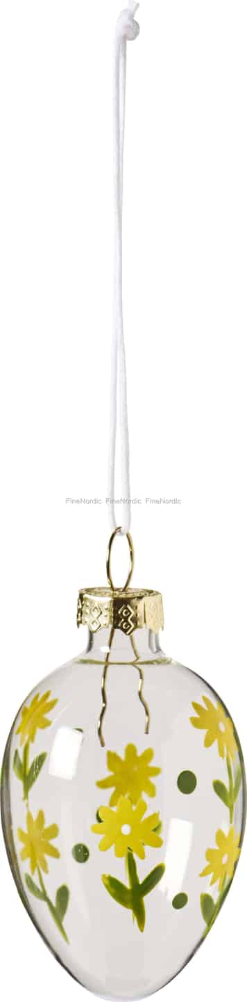By vårens glade ånd velkommen inn i hjemmet ditt med dette herlige glassegget fra Ib Laursen. Den gjennomsiktige overflaten er prydet med solgule blomster som fanger lyset og løftet om lysere dager. En sann hvisken om den nye årstiden.