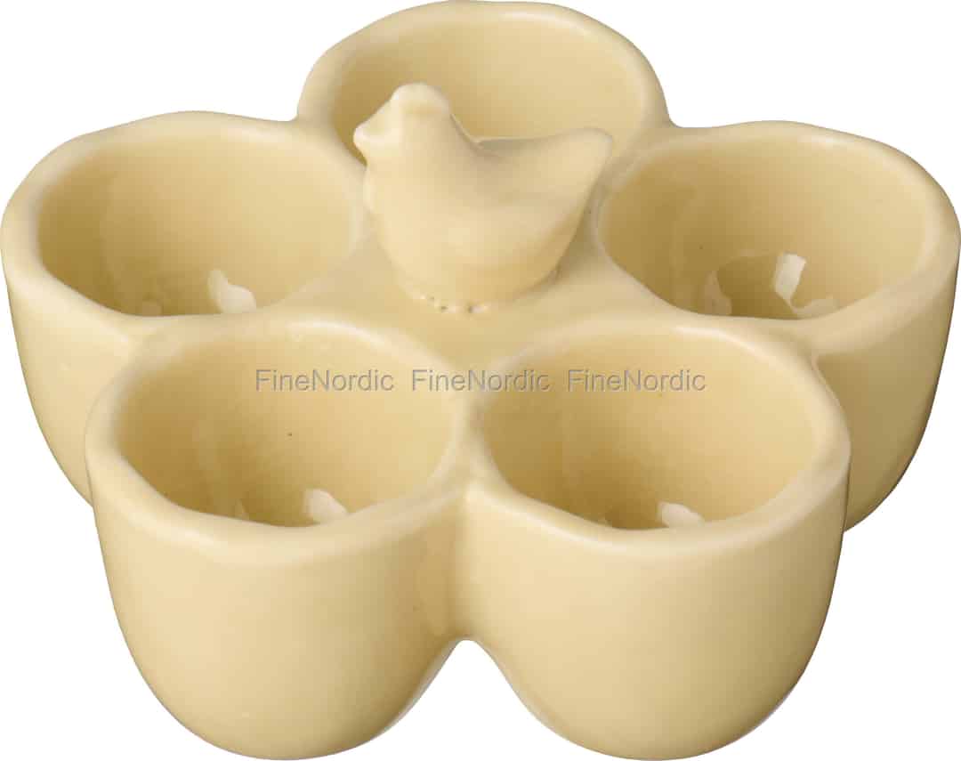 Se for deg kjøkkenet ditt fylt av det milde morgenlyset. Denne sjarmerende eggholderen fra Ib Laursen, i en myk, smørgul farge, er klar til å presentere frokosteggene dine med et snev av landlig idyll.