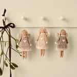 Se for deg hvordan de ligger lunt mellom de grønne grenene på juletreet, eller henger fredfullt fra en knaggrekke i gangen og ønsker alle som kommer på besøk, varmt velkommen. Deres tekstilform og håndlagde preg gir en følbar varme og mykhet til din sesongstyling. La denne trioen av skytsengler våke over hjemmet ditt, skape en fredelig atmosfære og minne deg på de stille, lykkelige øyeblikkene som gjør høytiden helt spesiell.