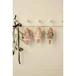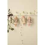 Minner du deg magien fra barndommens jul, fylt med enkle skatter og hjertevarm pynt? Sariel-englene fra Ib Laursen fanger nettopp denne essensen. Denne søte trioen, en del av 'My Nostalgic Christmas'-kolleksjonen, ser ut til å ha fløyet rett ut av en kjær eventyrbok. Hver engel, med sitt fredfulle uttrykk og garnhår, er kledd i en vakkert mønstret kjole i jordnære toner av brunt og krem, avsluttet med delikate blonder og et lite trehjerte som vitner om ren kjærlighet.