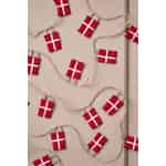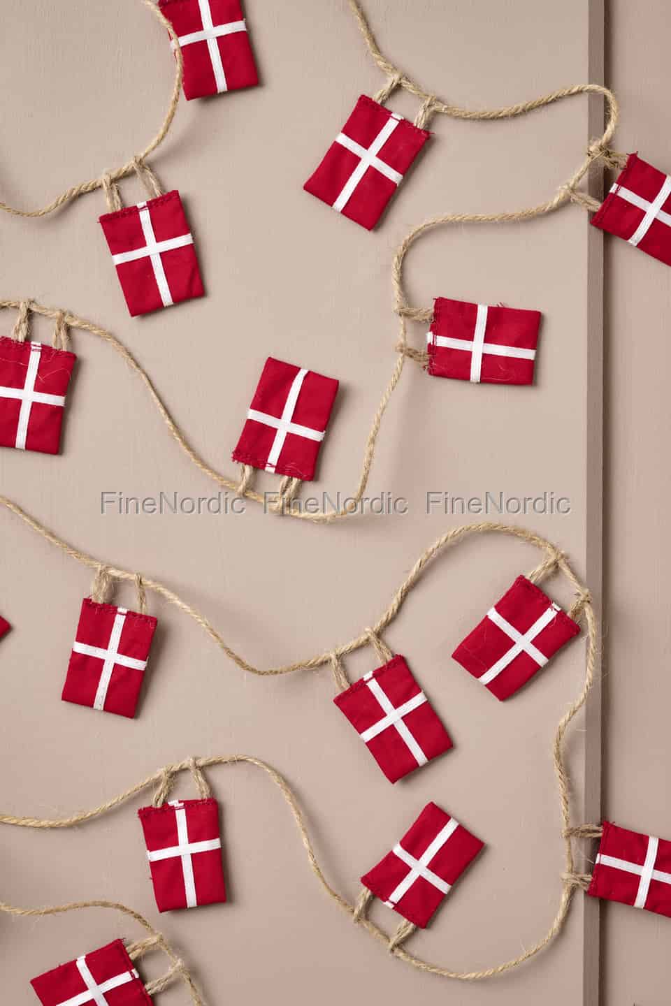 Se for deg kransen spent over en hageport til en sommerfest, drapert langs peishyllen i høytiden, eller viklet rundt en spesiell gave til en du er glad i. Den myke rødfargen på tekstilflaggene mot den naturlige snoren skaper et mildt og muntert uttrykk som umiddelbart føles innbydende. Dette er ikke bare en dekorasjon; det er en invitasjon til å skape minner og feire de små, glade øyeblikkene i livet, på ekte dansk vis.