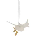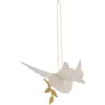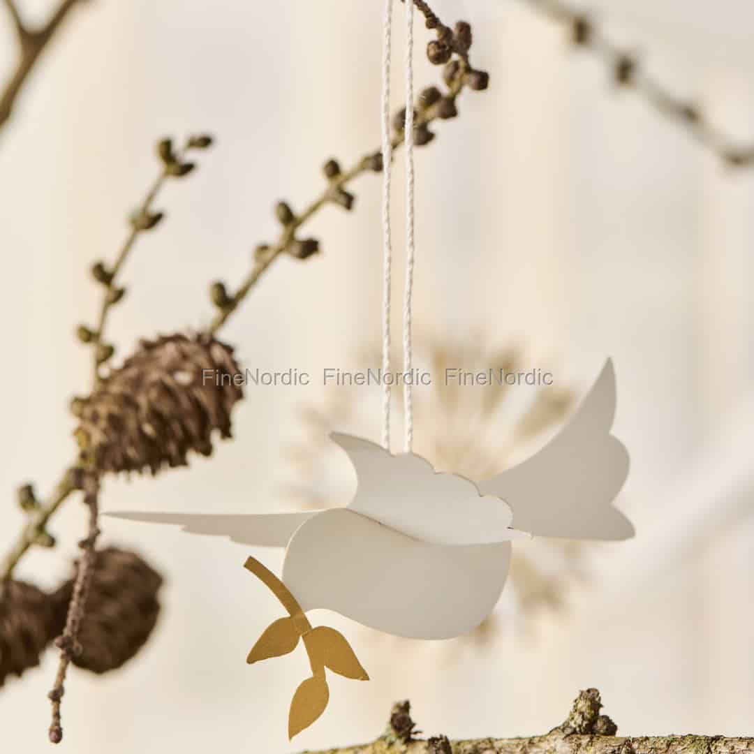 Se for deg denne fredelige budbringeren på en gren av juletreet ditt, plassert mellom barnåler og blinkende lys. Den er like vakker knyttet til en spesiell gave, hengende fra et rustikt kvistarrangement på peishyllen, eller som en del av en rolig vindusutstilling. Den lette vekten gjør at den danser i den minste bris, og bringer en subtil følelse av liv og ro inn i hjemmet ditt gjennom hele høytiden og videre.