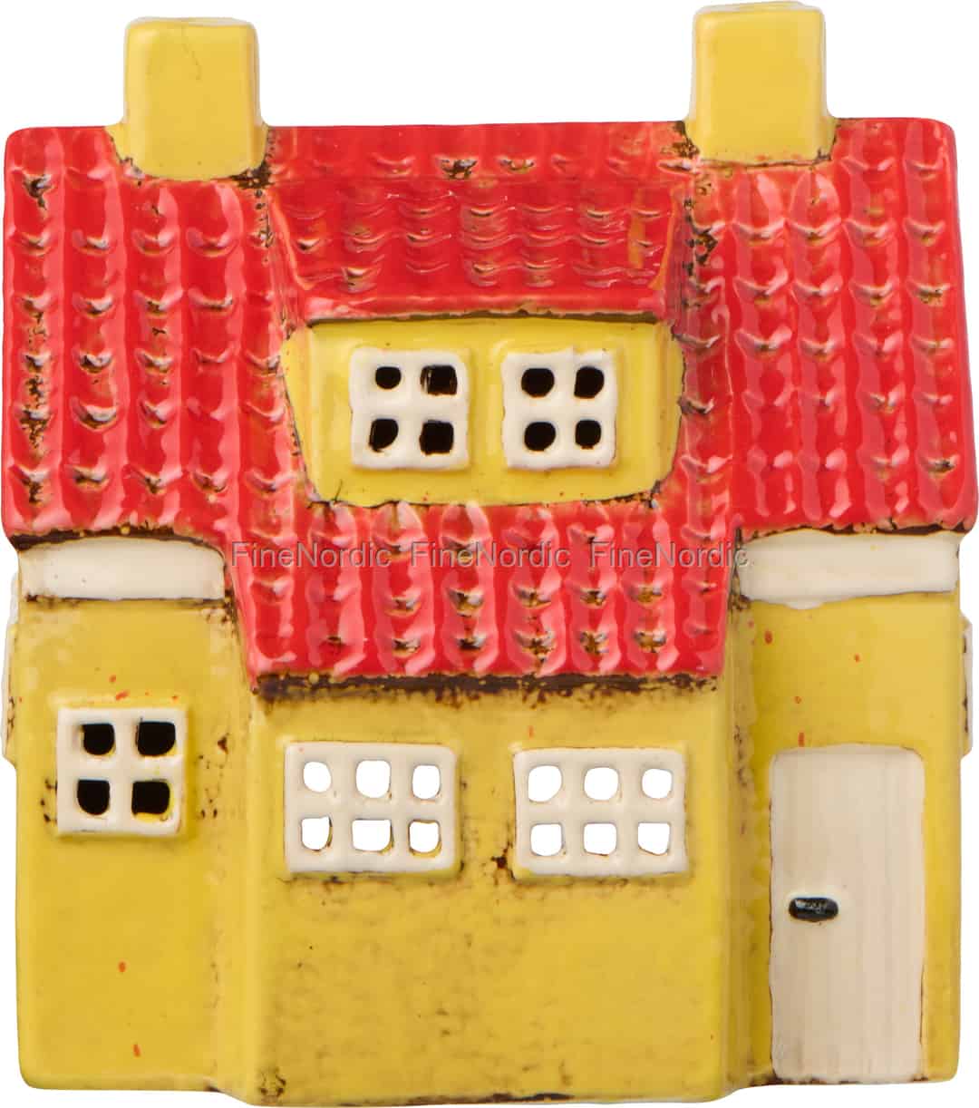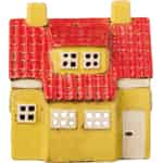 - Et streif av håndlaget sjarm: Med sine solgule vegger og livlige røde tak er dette huset laget av keramikk med en rustikk, blank overflate, noe som gir innredningen din et unikt og håndlaget preg.