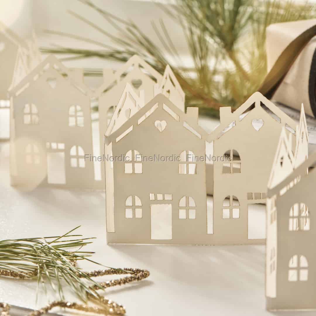 Se for deg en stille, snødekket gate med sjarmerende byhus, midt på ditt eget festbord. Denne vakre papirdekorasjonen fra Ib Laursen bretter seg ut og skaper en fortryllende miniatyrlandsby, som bringer et streif av skandinavisk enkelhet og magi inn i hjemmet ditt.