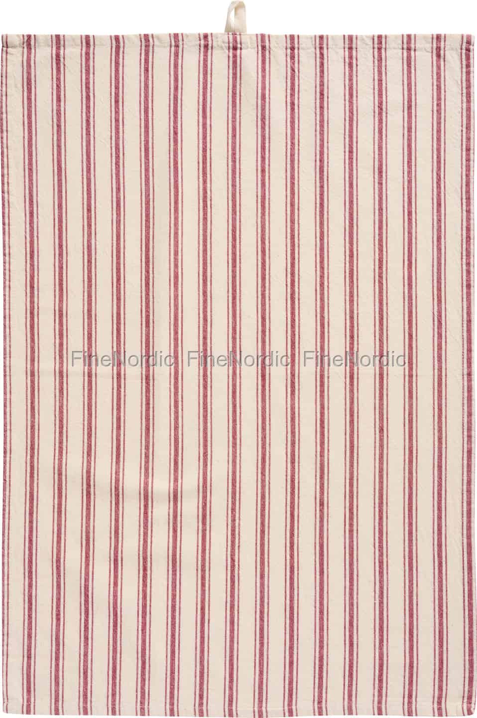 Ib Laursen Kjøkkenhåndkle - "Cecilie" - Natur - Røde striper, tynne og brede