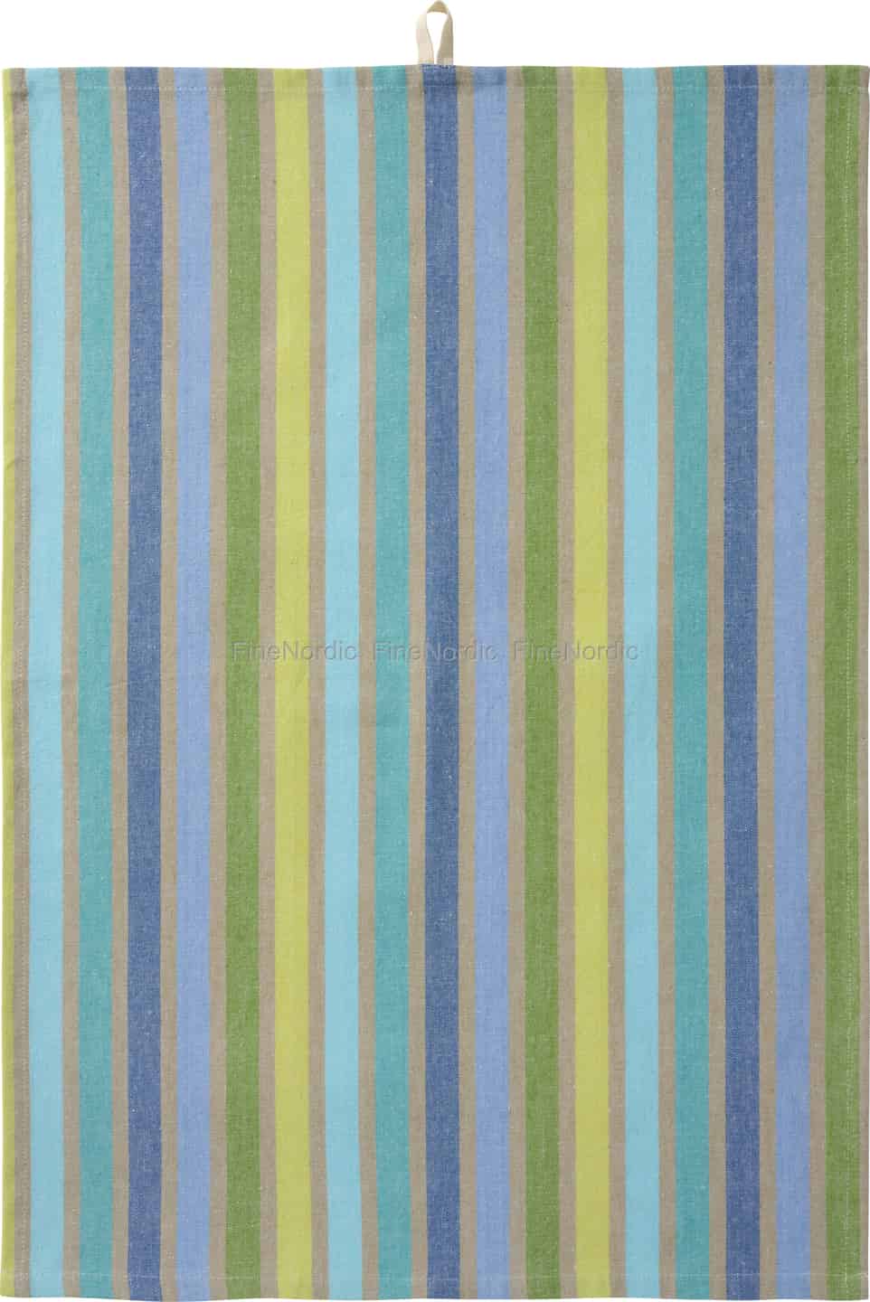 Se for deg det milde lyset fra en morgen ved sjøen som fyller kjøkkenet ditt. Dette vakre kjøkkenhåndkleet fra Ib Laursen fanger nettopp den følelsen, med sine beroligende striper i blått, grønt og sandfarget beige, og tilfører en enkel nordisk sjarm til dine daglige rutiner.