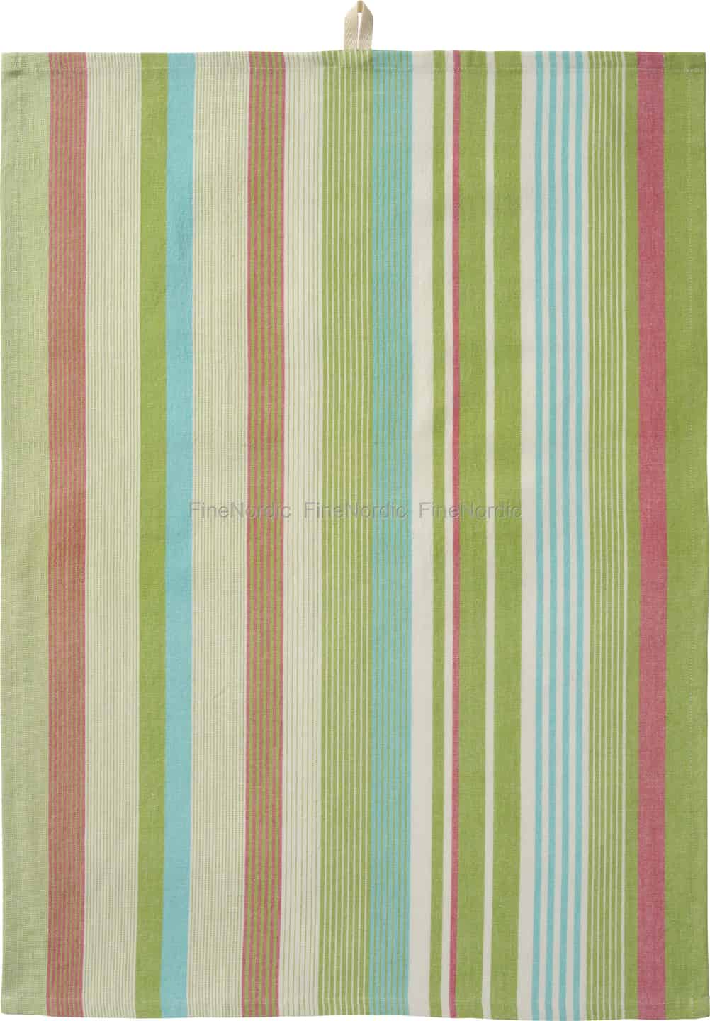 Det finnes en spesiell form for hygge i vakre hverdagsobjekter. Dette herlige kjøkkenhåndkleet fra Ib Laursen er et perfekt eksempel, designet for å bringe en liten lomme av solskinn til kjøkkenet ditt. Mønsteret med flerfargede striper føles som et kjært minne om lange sommerdager, med farger som gjenspeiler en hage i full blomst – friske grønntoner, myk rosa og den klare blåfargen fra en sommerhimmel. Laget av fantastisk taktil og absorberende bomull, føles det like godt som det ser ut, klart til å hjelpe med alt fra å tørke nyvaskede grønnsaker til å holde scones varme.